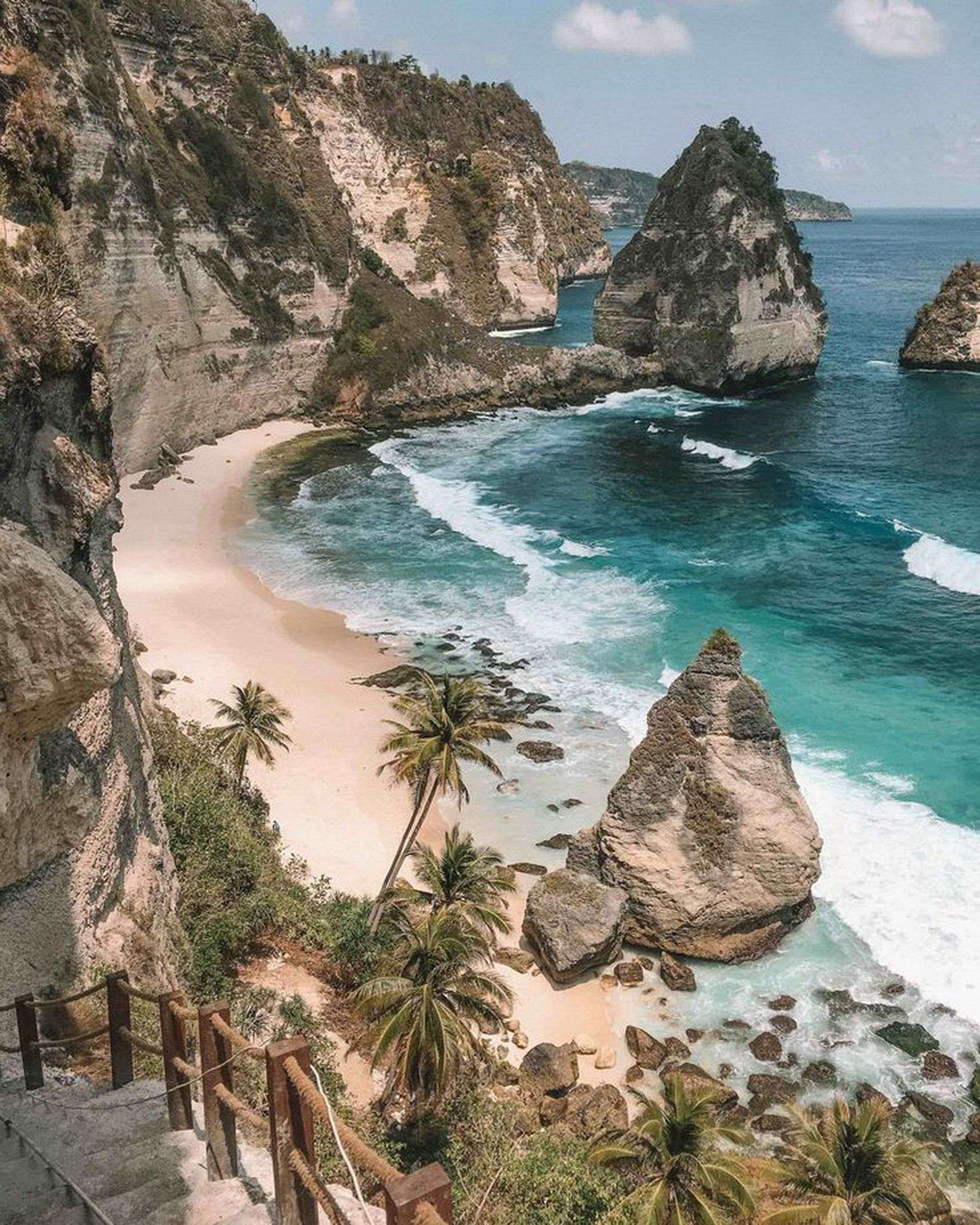Diamond Beach is an untouched, white-sand, and silky blue water bay on the eastern tip of Nusa Penida. With the, in 2018, almost finished stairs, Diamond Beach is ready to become one of the next highlights of Penida island and one of the best things to do on Nusa Penida.