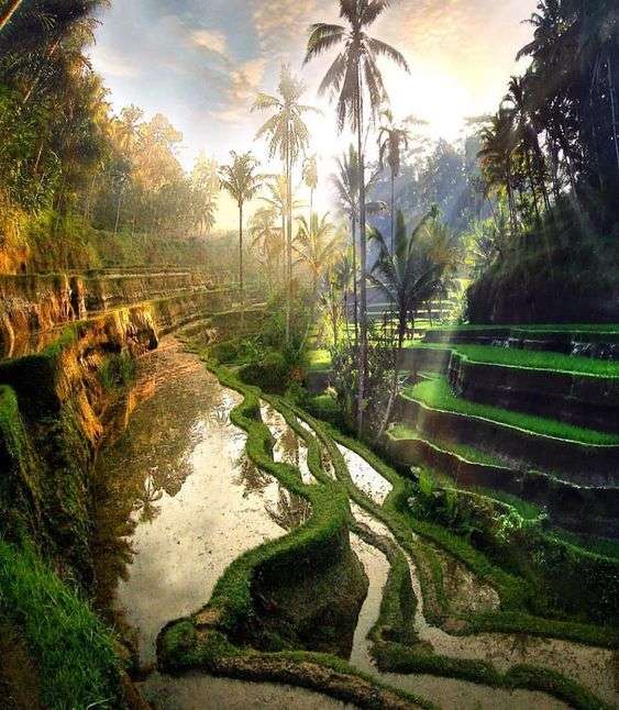 Tegallalang Rice Fields is situated in a valley that offers extraordinarily scenic lookouts over the terraces and surrounding green landscape.