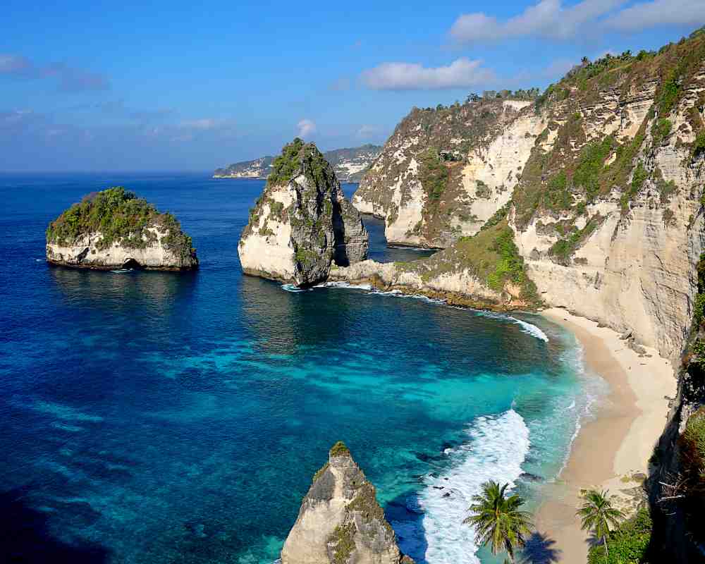 Diamond Beach is an untouched, white-sand, and silky blue water bay on the eastern tip of Nusa Penida. With the, in 2018, almost finished stairs, Diamond Beach is ready to become one of the next highlights of Penida island and one of the best things to do on Nusa Penida.