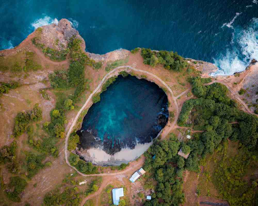 Angel's Billabong is a natural infinity pool and rock formation located on the island of Nusa Penida, Bali, Indonesia. It is a popular tourist attraction known for its stunning beauty and unique features.
